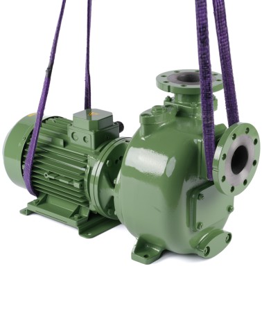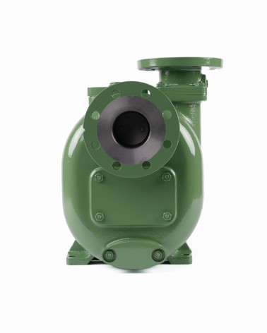 3” Selbstansaugende Kreiselpumpe aus Grauguss mit Gleitringdichtung mit Fettschmierung zum verbesserten Notlauf, Ventilklappe in der Saugseite und 15 kW Drehstrommotor Monoblock +F Flanschanschluß nach DIN. PN16