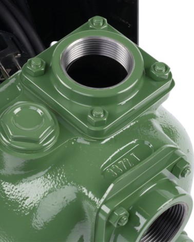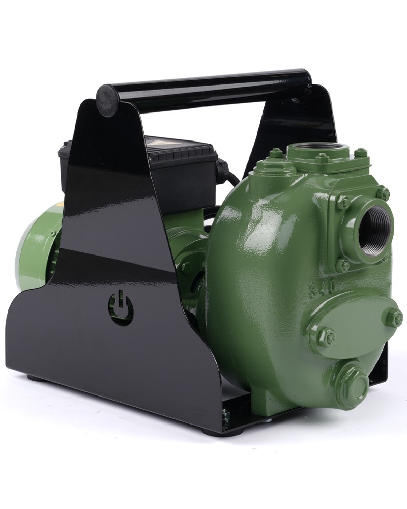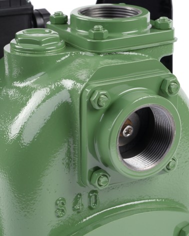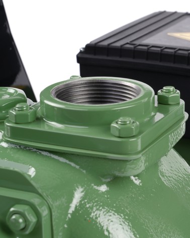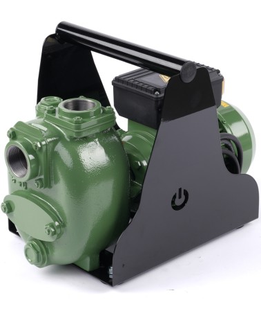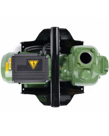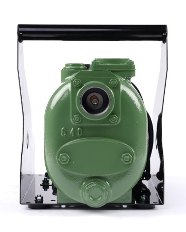 1½” selbstansaugende Kreiselpumpe aus Grauguss mit Gleitringdichtung, Fettschmierung für verbesserten Notlauf, Ventilklappe auf der Saugseite, mit Tragrahmen für 1 Person und montiertem 1,1 kW Wechselstrommotor.