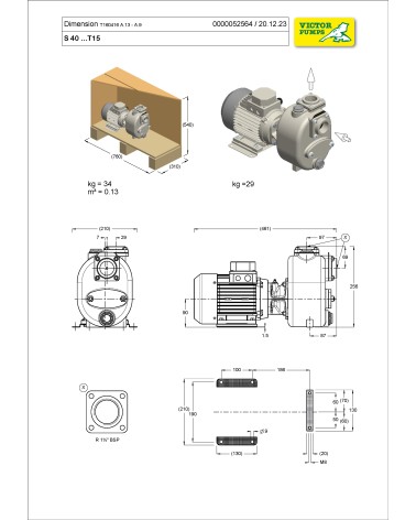 1½” Selbstansaugende Kreiselpumpe aus Grauguss mit Schneidwerk, Gleitringdichtung mit Fettschmierung zum verbesserten Notlauf, Ventilklappe in der Saugseite und 1,5 kW Drehstrommotor Monoblock -6 = geeignet für den Betrieb mit 60 Hz K = PTC-Thermistoren, thermischer Schutz des Elektromotors und geeignet für den Einsatz mit Frequenzumrichter