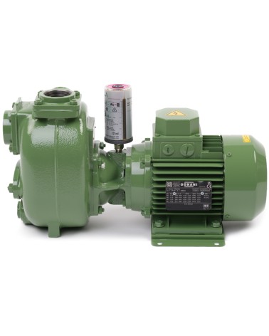 1½” Selbstansaugende Kreiselpumpe aus Grauguss mit Gleitringdichtung mit Fettschmierung zum verbesserten Notlauf, Ventilklappe in der Saugseite und 1,1 kW Drehstrommotor Monoblock +PS automatischer Schmierstoffgeber für die Gleitringdichtung