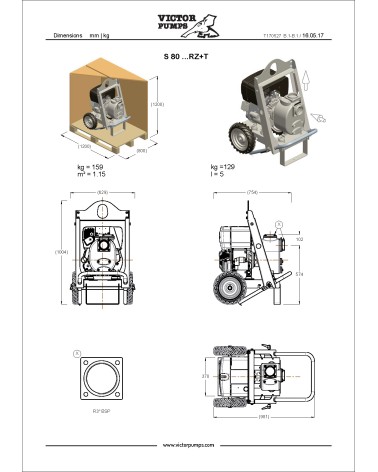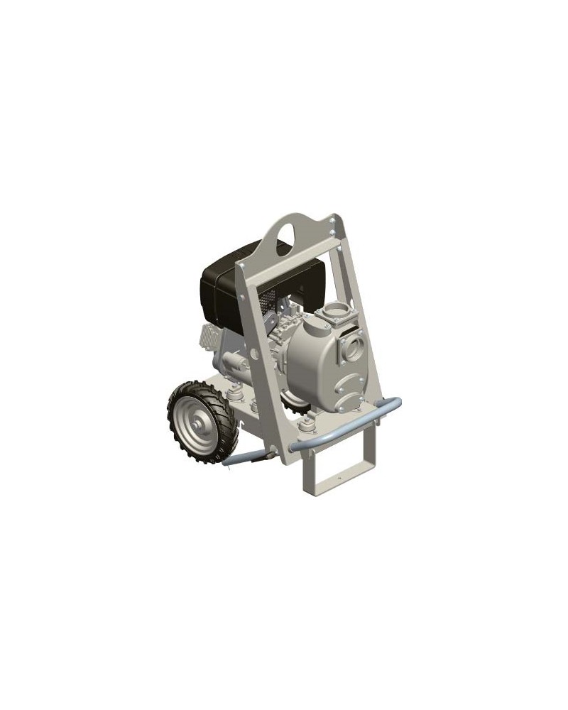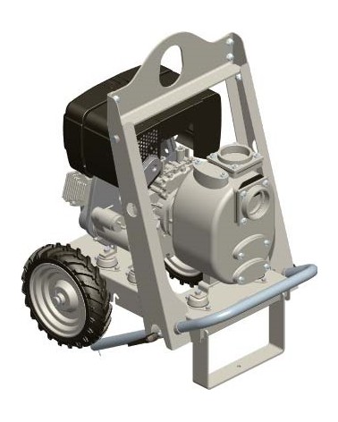 3” Selbstansaugende Kreiselpumpe aus Grauguss mit Gleitringdichtung mit Fettschmierung zum verbesserten Notlauf, Ventilklappe in der Saugseite und Dieselmotor, montiert auf Handwagen mit Hebeöse und Vollgummiräder.