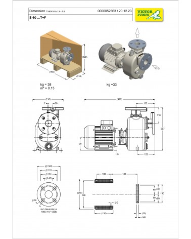 1½” Selbstansaugende Kreiselpumpe aus Grauguss mit Gleitringdichtung mit Fettschmierung zum verbesserten Notlauf, Ventilklappe in der Saugseite und 1,1 kW Drehstrommotor Monoblock +F Flanschanschluß nach DIN. PN16