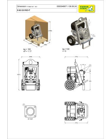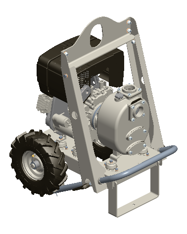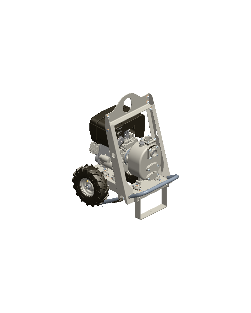 2” Self-priming centrifugal pump in cast iron with mechanical seal, grease-lubricated, non return valve and Diesel engine, mounted on trolley with lifting hook and rubber wheels.