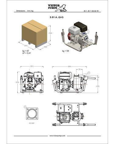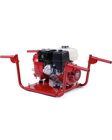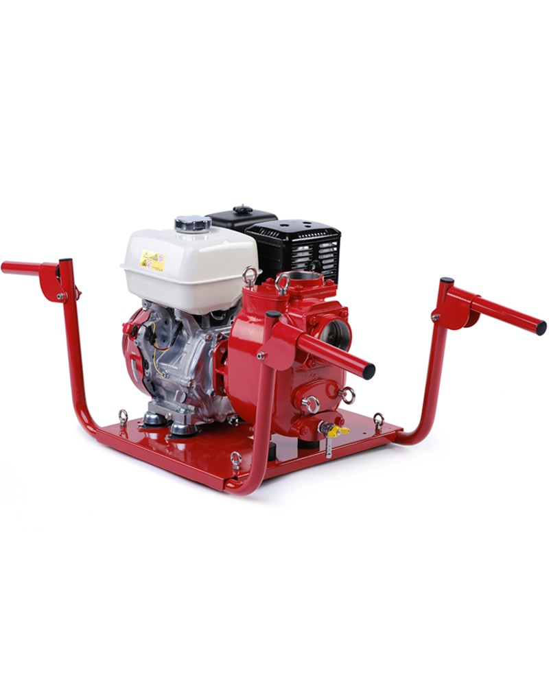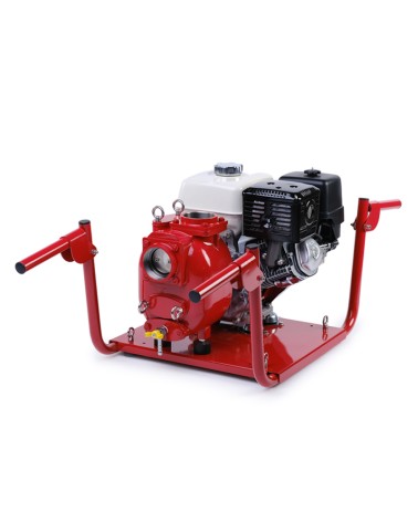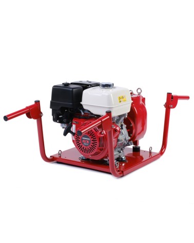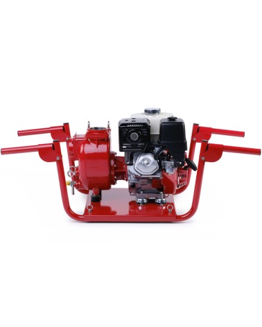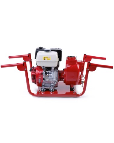 3” Self-priming centrifugal pump in cast iron with mechanical seal, grease-lubricated, non return valve and 8,7 kW gasoline engine, mounted on carrying frame for 2 people.