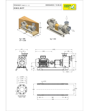 4” Self-priming centrifugal pump in cast iron with mechanical seal, grease-lubricated, non return valve and 18,5 kW electric motor, on baseplate with coupling and guard. +F flange coupling according DIN. PN16 +PS automatic lubricator for mechanical seal
