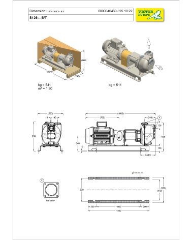 4” Self-priming centrifugal pump in cast iron with mechanical seal, grease-lubricated, non return valve and 30 kW electric motor, on baseplate with coupling and guard.