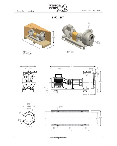 6” Self-priming centrifugal pump in cast iron with mechanical seal, grease-lubricated, non return valve and 11 kW electric motor, on baseplate with coupling and guard. +PS automatic lubricator for mechanical seal