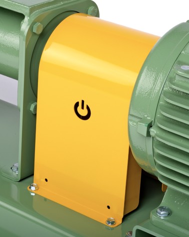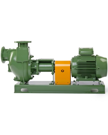 4” Self-priming centrifugal pump in cast iron with mechanical seal, grease-lubricated, non return valve and 11 kW electric motor, on baseplate with coupling and guard. +F flange coupling according DIN. PN16