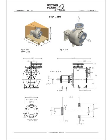 Pompa centrifuga autoadescante da 6” in ghisa a girante semi-aperta con tenuta meccanica lubrificata a grasso, valvola di non ritorno integrata, a supporto. +F fangia secondo DIN. PN16