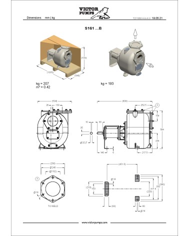 Pompa centrifuga autoadescante da 6” in ghisa a girante semi-aperta con tenuta meccanica lubrificata a grasso, valvola di non ritorno integrata, a supporto. +PS tenuta meccanica lubrificata a grasso con ingrassatore automatico