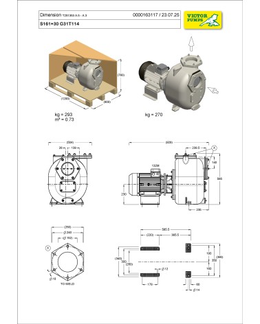 Pompa centrifuga autoadescante da 6" in ghisa a girante semi-aperta con tenuta meccanica lubrificata a grasso, valvola di non ritorno integrata e motore monoblocco trifase da 11 kW. +PS tenuta meccanica lubrificata a grasso con ingrassatore automatico