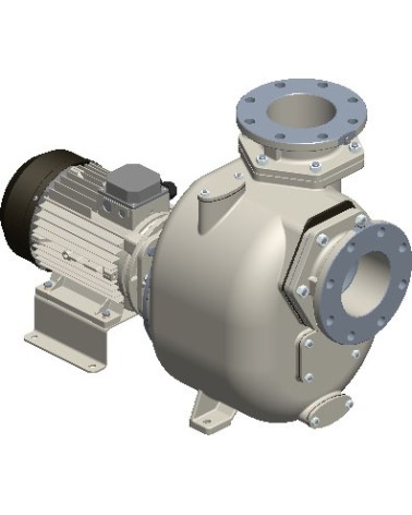 Pompa centrifuga autoadescante da 6" in ghisa a girante semi-aperta con tenuta meccanica lubrificata a grasso, valvola di non ritorno integrata e motore monoblocco trifase da 11 kW. +F fangia secondo DIN. PN16 +PS tenuta meccanica lubrificata a grasso con ingrassatore automatico